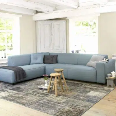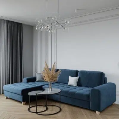 كنبة زاوية خشب سويدي وكتان – ازرق