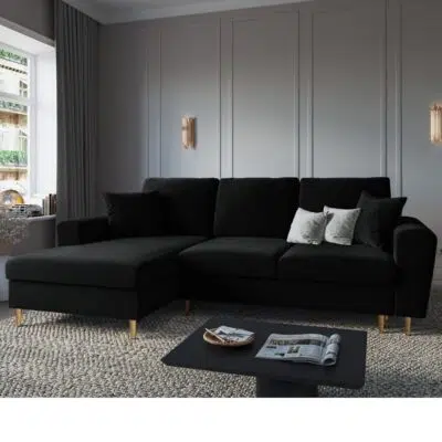 كنبة زاوية مخمل و خشب سويدي – بيج