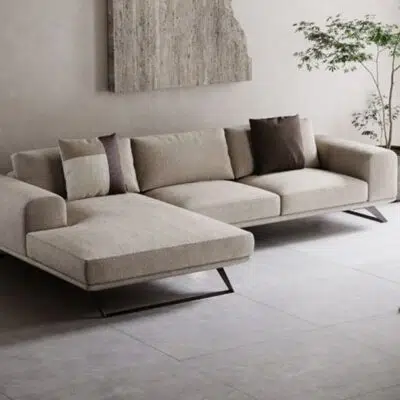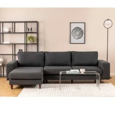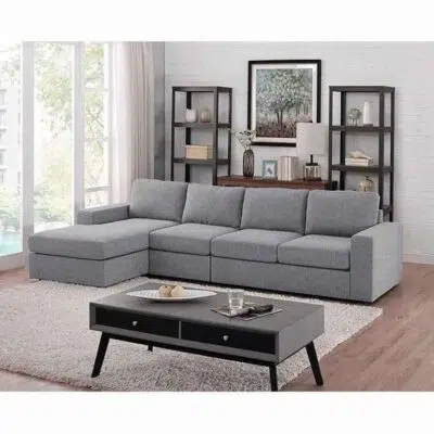 كنبة زاوية خشب سويدي وكتان – رمادي