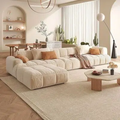 كنب زاوية فاثر عائلي – راحة مطلقة بتصميم فاخر المقاسات: العرض: 400 سم الطول: 300×300 سم العمق: 104 سم عندما