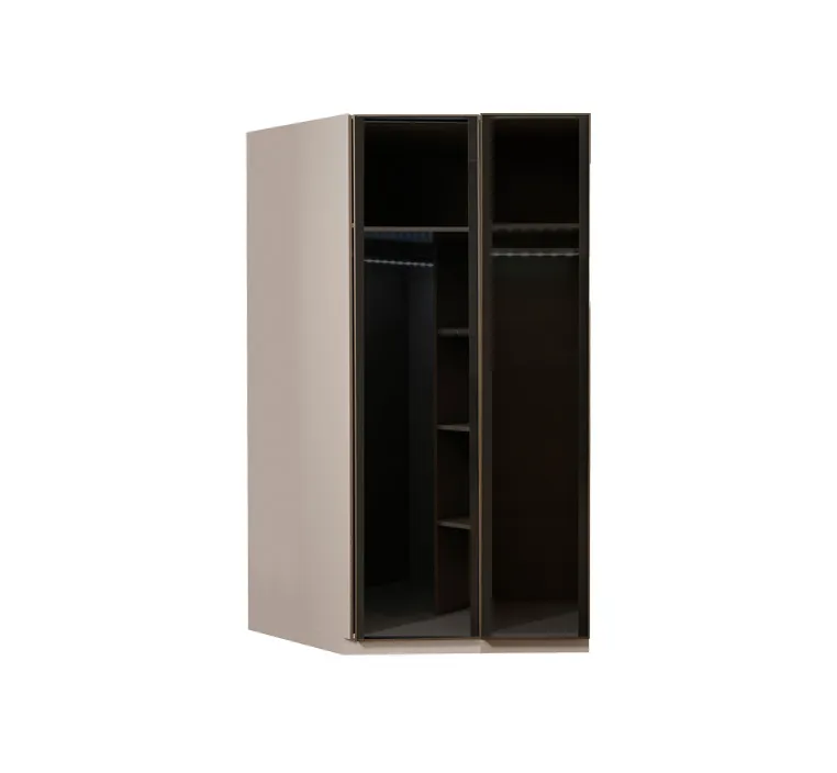 ودّع فوضى الغرفة وضيق المساحة! تصميم نور الزاوية مدروس بعناية ليستغل الزوايا بشكل كامل، بدون ما يضحي بالأناقة. إذا كان عندك مساحة محدودة أو غرفة صغيرة، هالخزانة بتكون الحل المثالي لأنها توفر لك تخزين واسع بشكل راقي ومرتب.