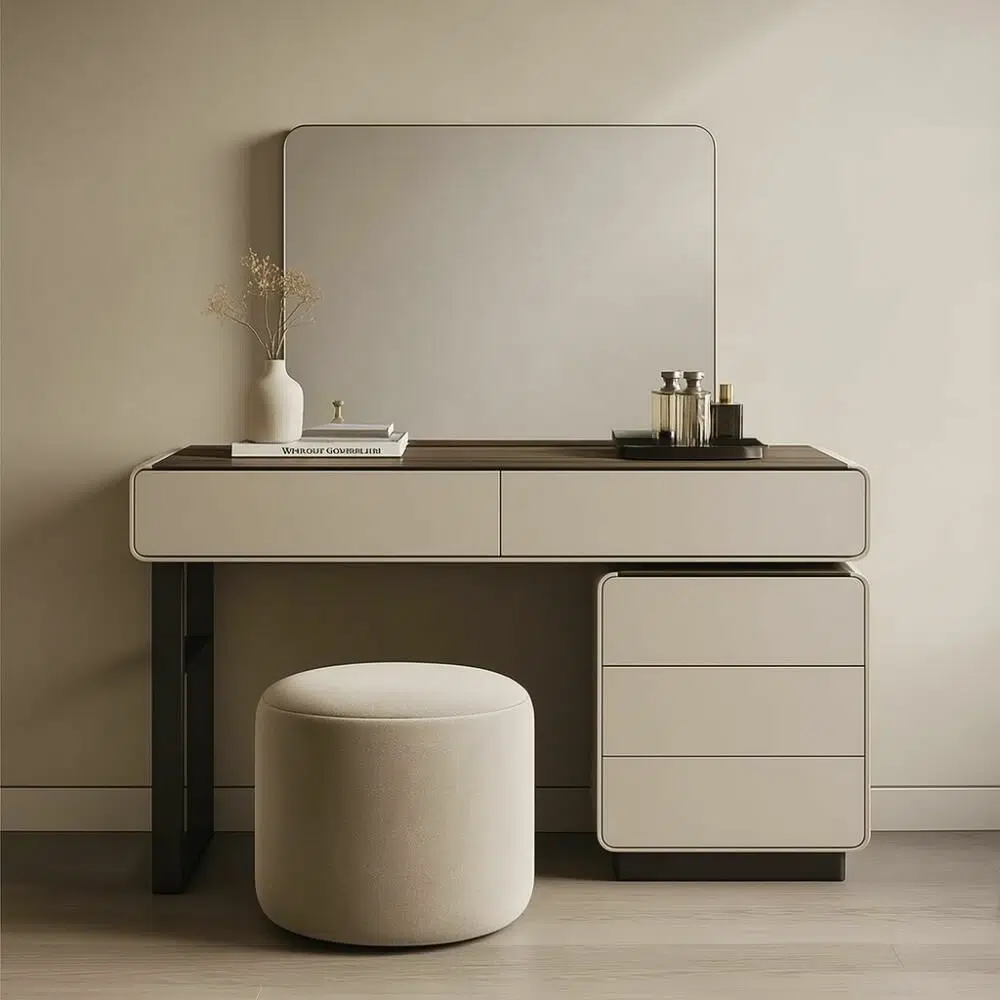 • أدراج منظمة: مجموعة أدراج عملية لاستيعاب كل أدواتك اليومية مثل المكياج، الفرش، الإكسسوارات، وغيرها.