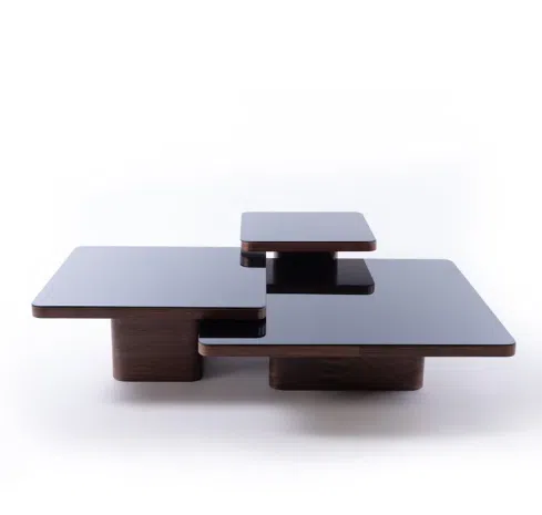 يمكن تنسيق الطاولات معاً بارتفاعات مختلفة، لتكوين مجموعة متداخلة بأسطح متراكبة، ما يخلق شكلاً فنياً ديناميكياً ويوفر مساحة استخدام متعددة المستويات.
